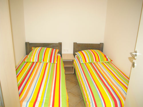Ima dvije spavaće sobe u kojima mogu spavati 5 odraslih osoba.