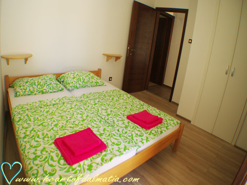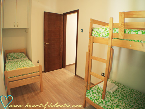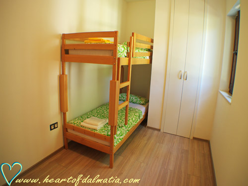 Ima dvije spavaće sobe u kojima mogu spavati 5 odraslih osoba.