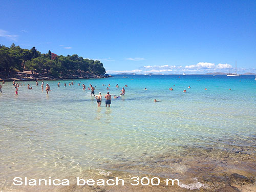 Apartman se nalazi na odličnoj lokaciji. Udaljen je svega 5 minute hoda od pješčane plaže "Slanica" te 3 minute hoda od plaže"Podvršci". Trgovina je udaljena samo 6 minuta hoda. Centar mjesta udaljen je 20 minuta hoda.
