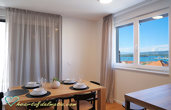 Prekrasan novouređeni apartman sa dvije spavaće sobe i dvije kupaone nalazi se na izvrsnoj lokaciji, blizu centra Murtera. Apartman se nalazi u zgradi koja je izgrađena 2022. godine. Sa lođe od 11m2 se prostire pogled na uvalu Hramina i centar Murtera. U apartmanu može boraviti maksimalno 6 gostiju. Ispred kuće je osiguran parking.