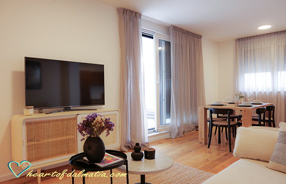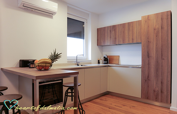 Apartman je opremljen s: TV-om, klimom, pećnicom, besplatnim WiFi internetom, perilicom rublja, perilicom suđa.
