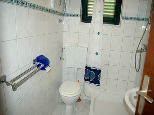 Ima kopalnico s prho.