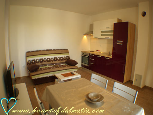 Apartma je opremljen z tv-om, klimom, pečico, brezplačnom wifi internetn povezava.