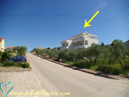 je približno 550 m. od centra mesta a 300 m. od morja ali prve plaže v kraju Murter.