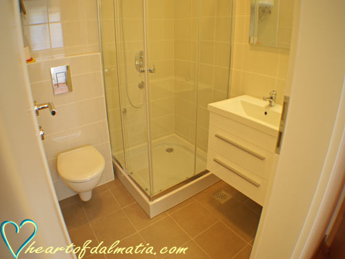 Ima kopalnico s prho.