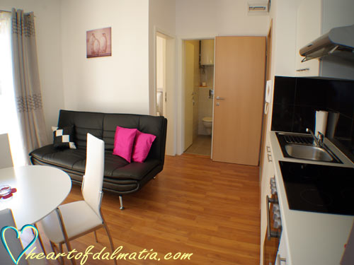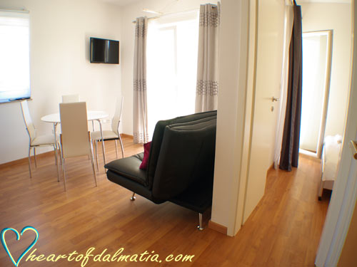 Apartma je opremljen z tv-om, klimom, pečico, brezplačnom wifi internetn povezava.