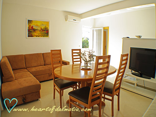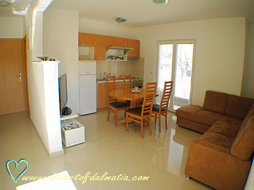 Apartma je opremljen z tv-om, klimom, pečico, brezplačnom wifi internetn povezava.