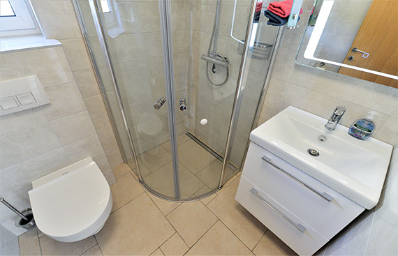 Ima kopalnico s prho.