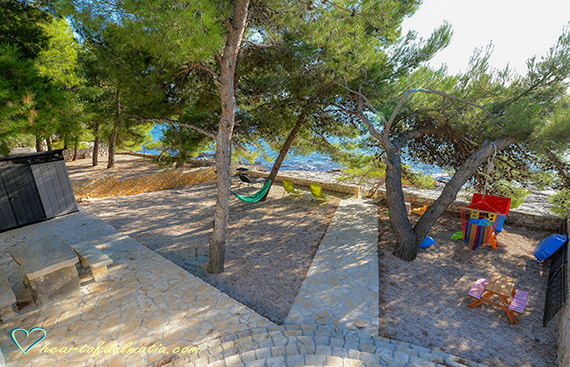 je približno 2200 m. od centra mesta a 20 m. od morja ali prve plaže v kraju Murter.