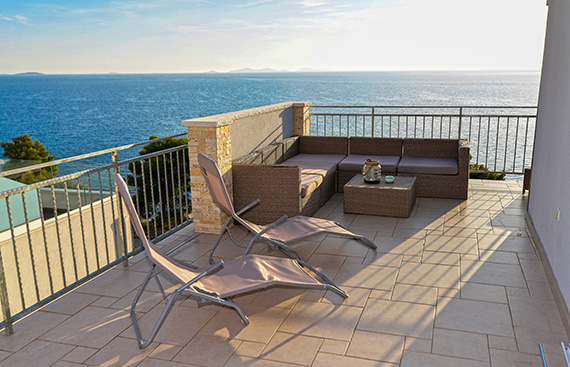 Na novo prenovljena hiša s 5 apartmaji se nahaja na območju Podraduc, med plažo Slanica in plažo Cigrada. Nahaja se neposredno ob morju, z velikih teras pa se ponuja čudovit pogled na Kornate. Pred hišo je prostor za sončenje in igro v senci borovega gozdička tik ob morju. Ta apartma je idealen za večjo družino ali 2 para, ki želijo uživati v čudovitem pogledu na morje, čarobnih sončnih zahodih in vsakodnevnem kopanju neposredno pred apartmajem...