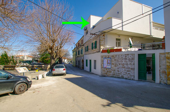 je približno 580 m. od centra mesta a 580 m. od morja ali prve plaže v kraju Murter.