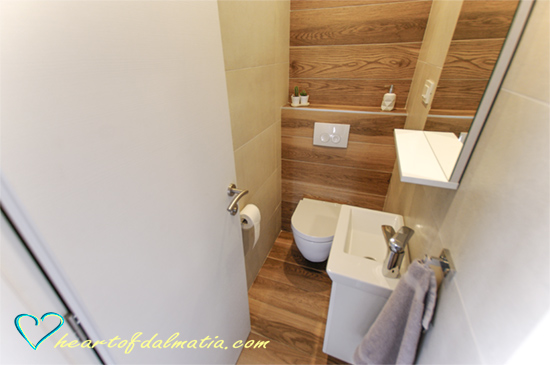 Ima kopalnico s prho. Ima 1 WC - toalet.