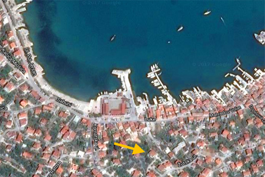 je približno 300 m. od centra mesta a 250 m. od morja ali prve plaže v kraju Murter.