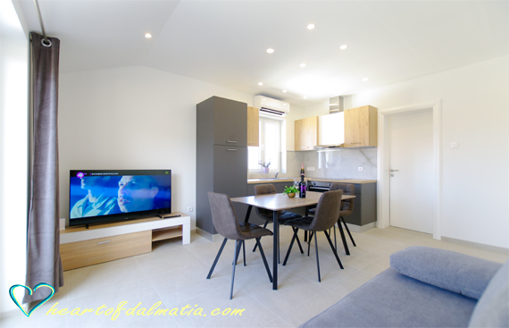 Apartma je opremljen z tv-om, klimom,