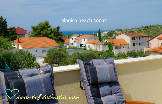Na novo prenovljeno stanovanje se nahaja na odlični, mirni lokaciji, le 6-7 minut hoje stran od plaže Slanica in 15 minut hoje od centra mesta. Stanovanje je bilo urejeno leta 2023 in je v celoti opremljeno. S terase je čudovit pogled na Kornate in Murterski zaliv "Hramina".Idealna je za družino z dvema otrokoma ali pare.