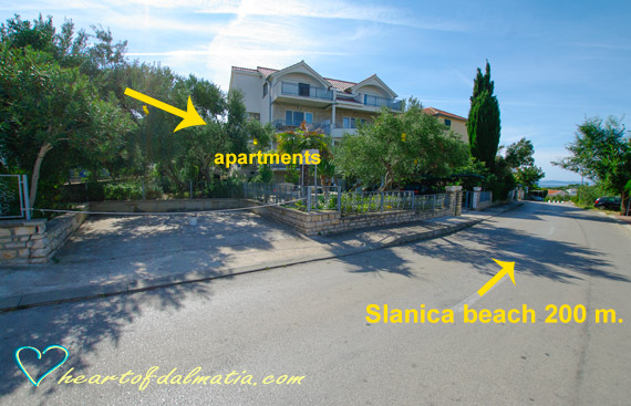 je približno 500 m. od centra mesta a 200 m. od morja ali prve plaže v kraju Murter.