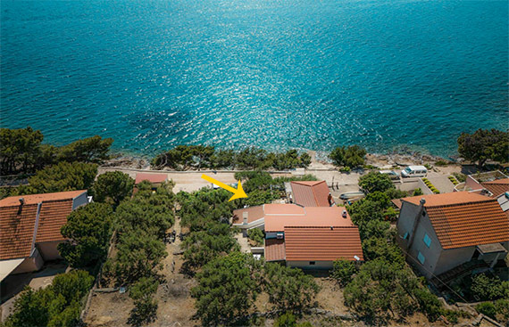 je približno 2500 m. od centra mesta a 40 m. od morja ali prve plaže v kraju Murter.
