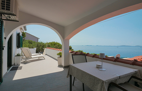 Ta novo prenovljen apartma za 2+1 osebi se nahaja na odlični lokaciji v Podraduču na Murteru, le 30 metrov od morja in male plaže. Oddaljen je 200 metrov od priljubljene plaže Čigrađa, kjer se nahaja odličen restoran in beach bar. S terase apartmaja se razprostira čudovit razgled na Kornatske otoke, sončni zahodi pa so čarobni in ustvarjajo romantično vzdušje.