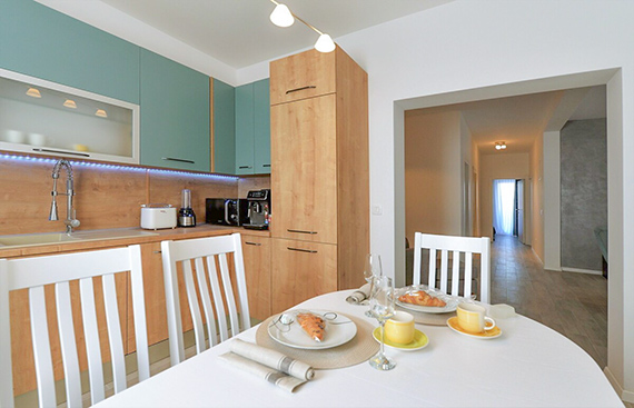 Apartma nudi visok nivo udobja in je primeren tudi za daljše bivanje.