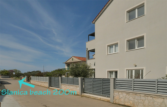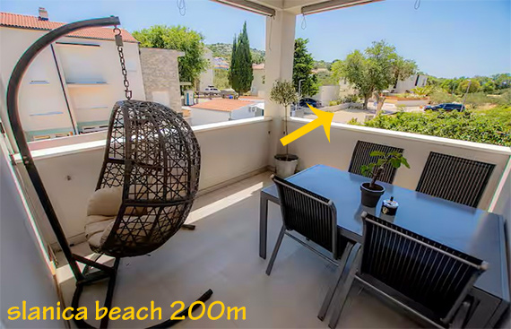 Na novo prenovljen apartma iz leta 2024 se nahaja na eni najboljših lokacij v Murterju – na začetku peš cone, ki vodi do znane plaže Slanica. Na drugo stran pa se s kratkim sprehodom pride do plaže Luke in centra kraja.